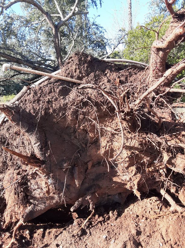 It seems when you go for long periods of no rain, then drench the ground to the nth degree, such as we experienced, the roots, possibly having been weakened over the long stressful time, just can’t handle the new condition of softness in the soil.