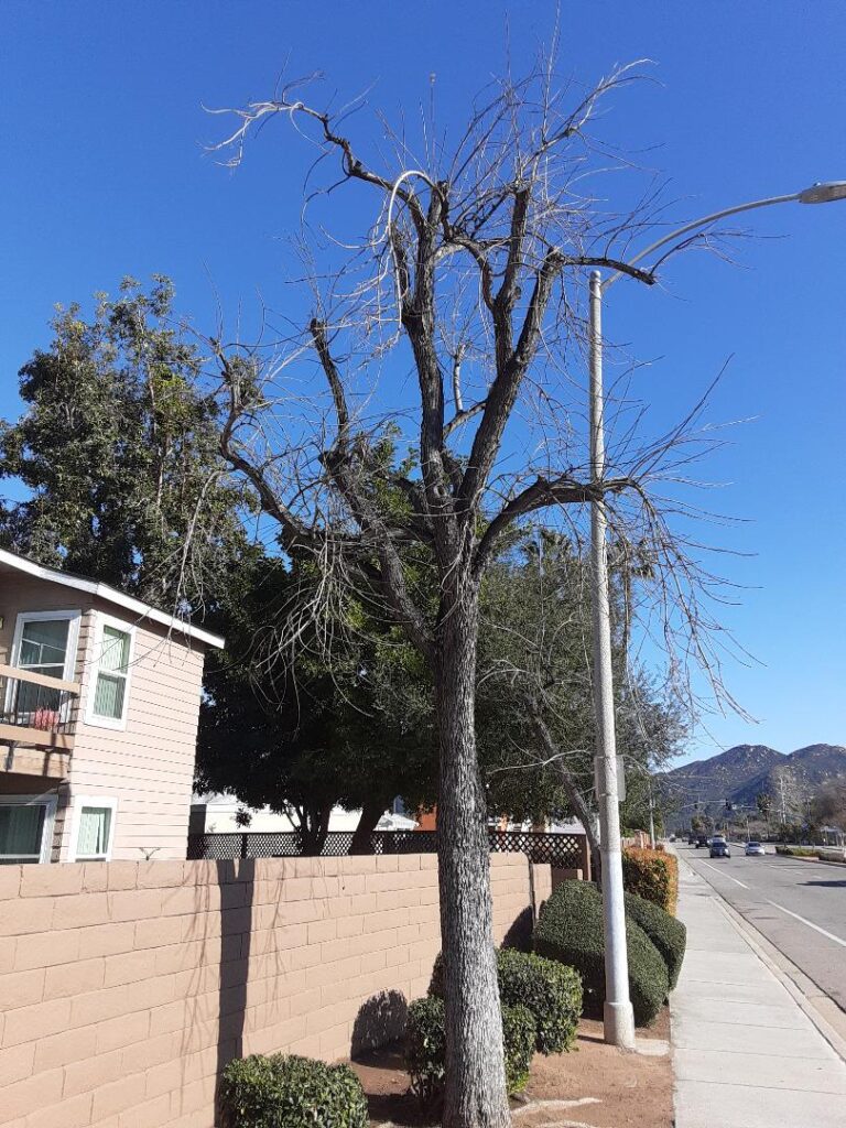 So here is a fairly good sized tree, in a parking lot of all places, where cars are below, and people are constantly ready to have tree branches smashed down on their heads.